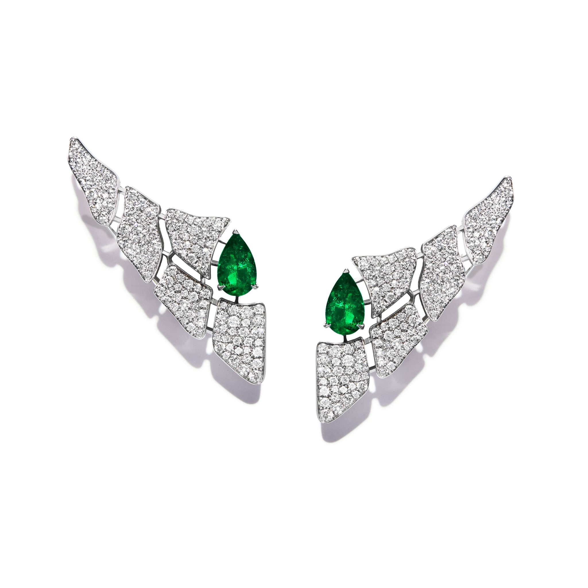 18K WHITE GOLD WITH WHITE DIAMONDS OF 1.66 CARATS AND A PAIR OF COLOMBIAN PEAR SHAPE EMERALDS OF 0.8 CARATS EACH GIA certified - 18K gold 13.4 g