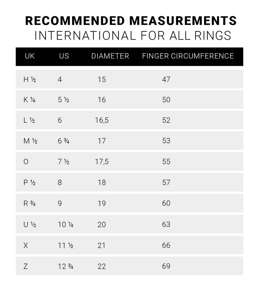 To measure your finger, you can use a tape measure. Measure the circumference of your finger in mm. This measurement corresponds to the size of the ring.